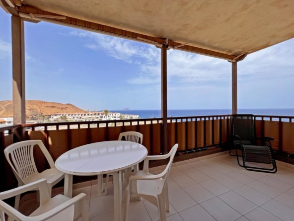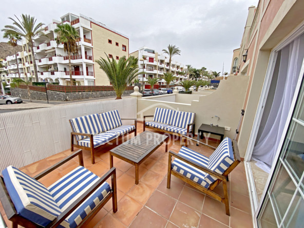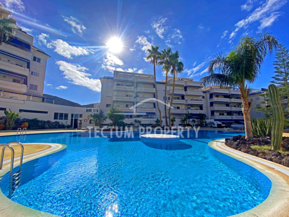 Amplio apartamento de 1 dormitorio en Parque Tropical, Los Cristianos. Totalmente amueblado y equipado. El apartamento dispone de un luminoso salón con acceso a una terraza con vistas a la piscina y al mar.