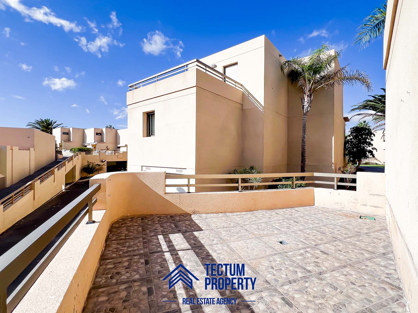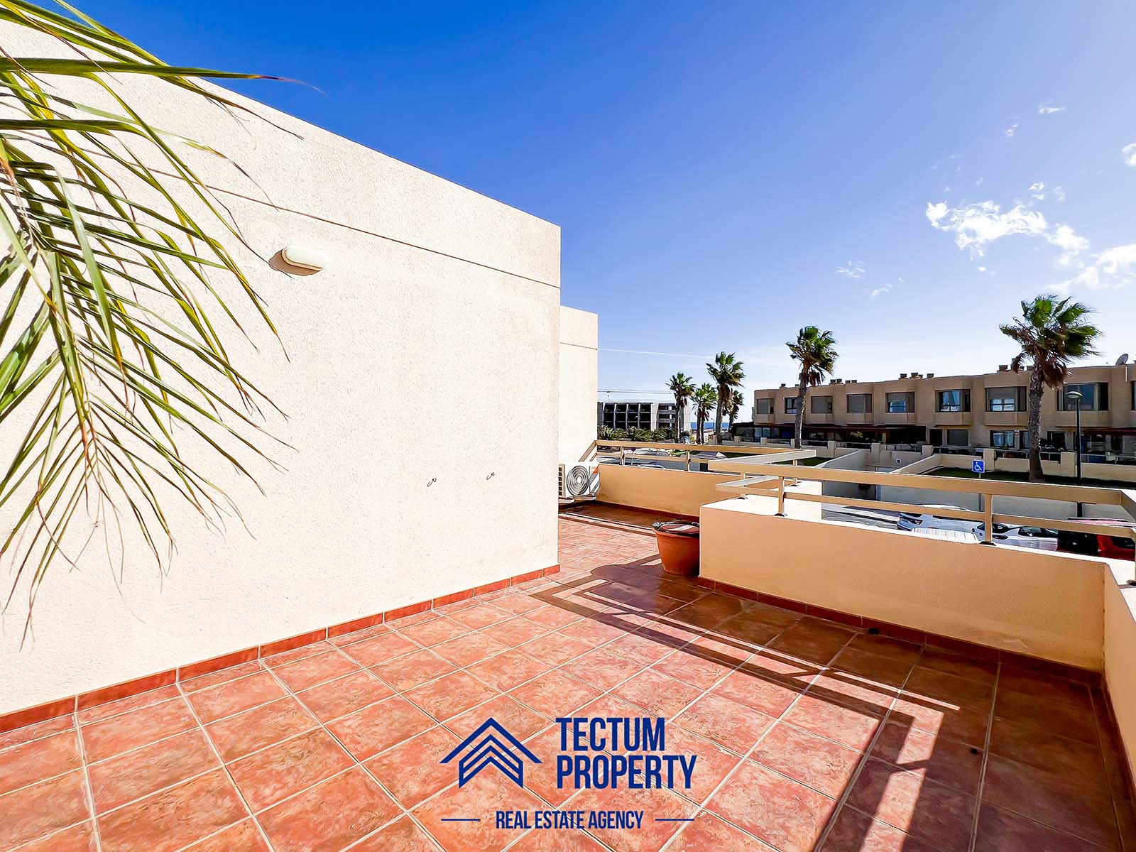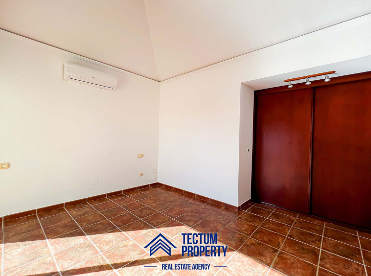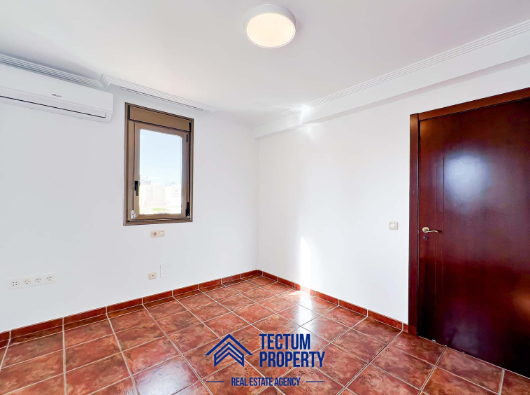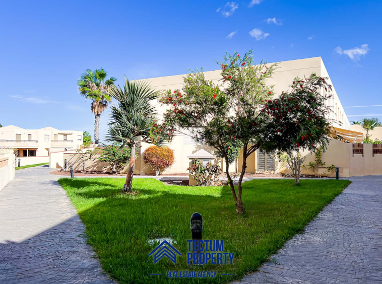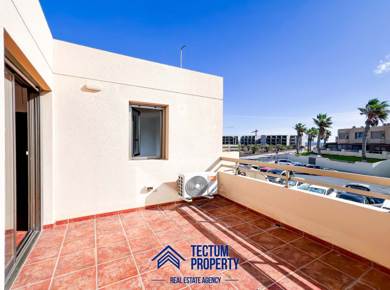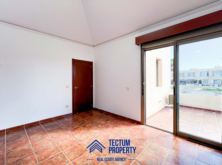 Townhouse in La Tejita, Sotavento II residential complex. The property has 223 m2 of living space and comprises 3 spacious bedrooms, 2 bathrooms, a large and bright living room, an open-plan kitchen, and several sunny terraces. It also includes a private garage and 2 storage rooms. The house has been recently painted and features air conditioning. It is located in a well-maintained complex with a communal swimming pool and landscaped gardens. Just a 5-minute walk from the beach.