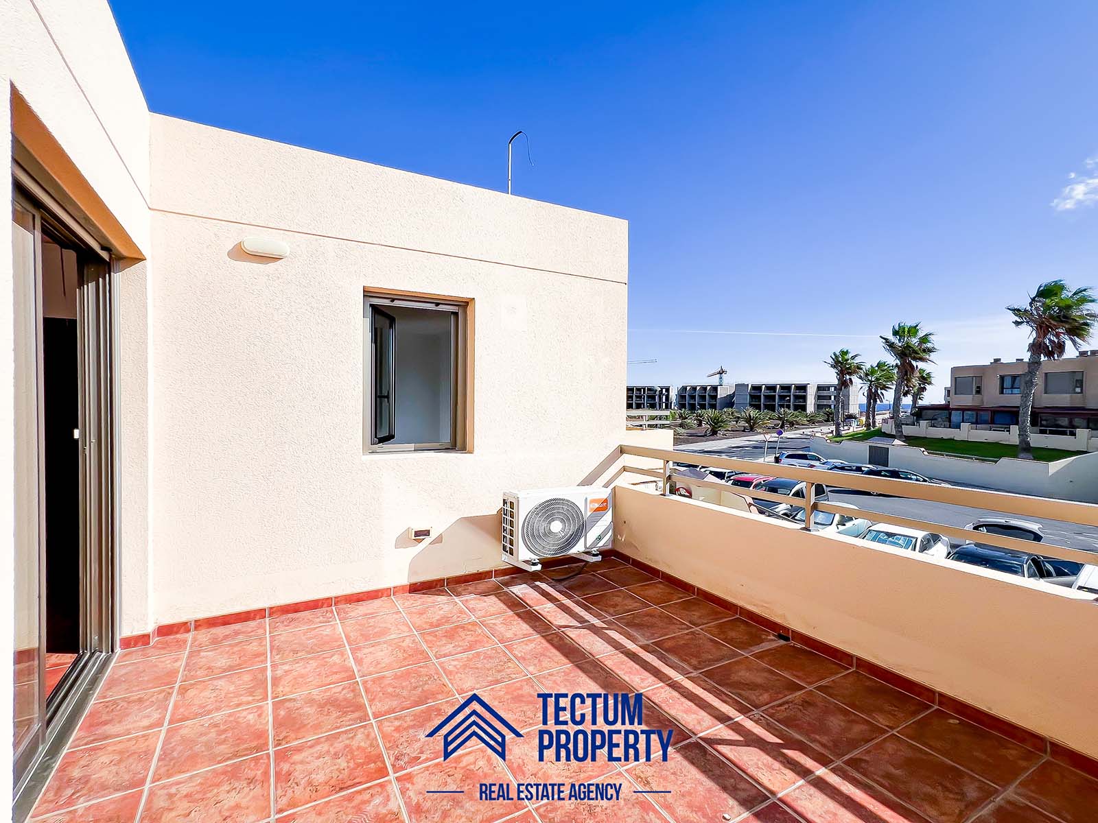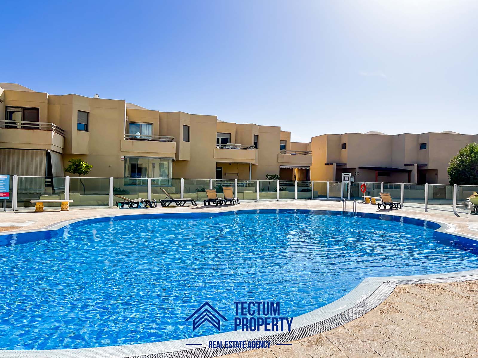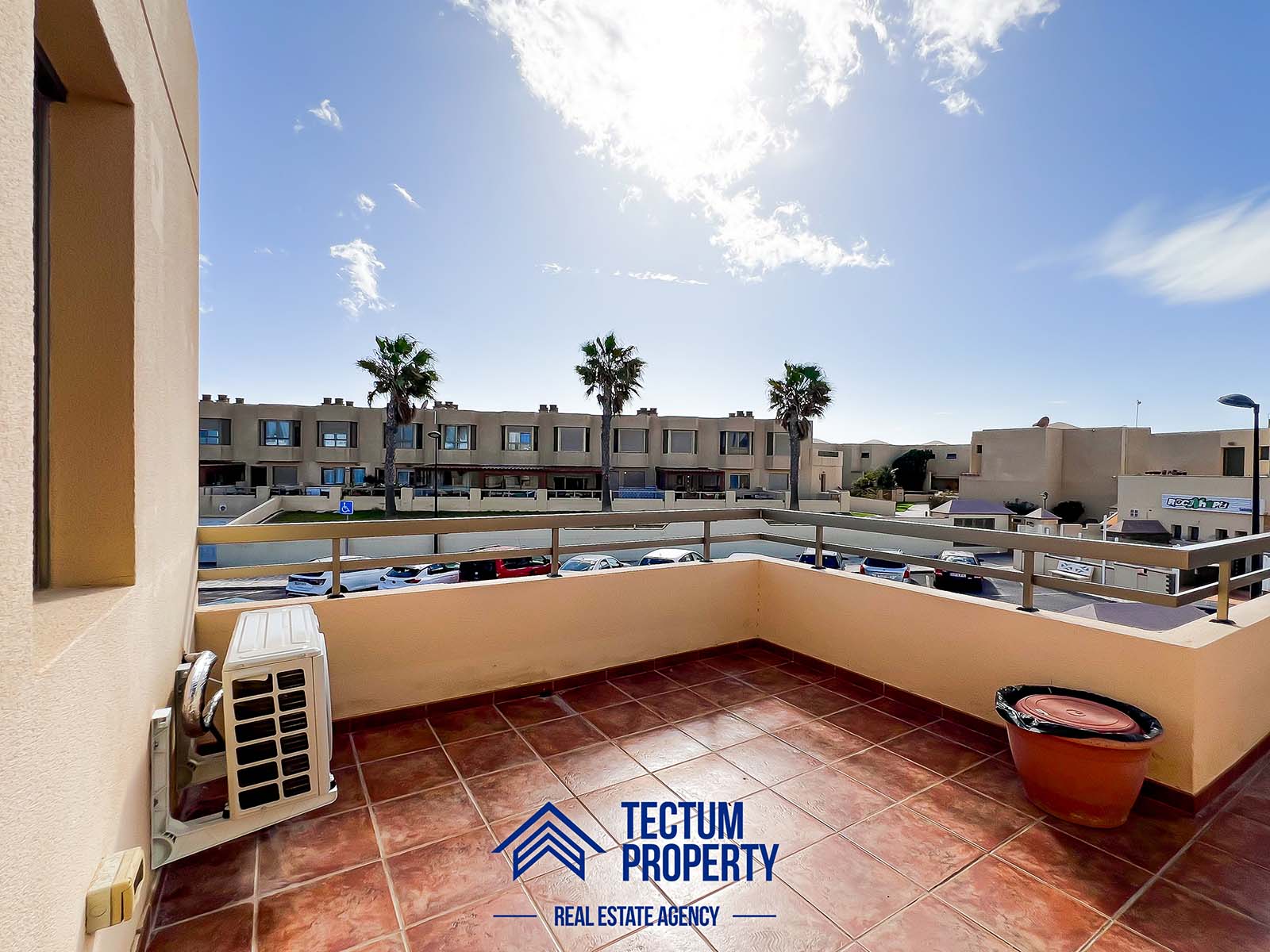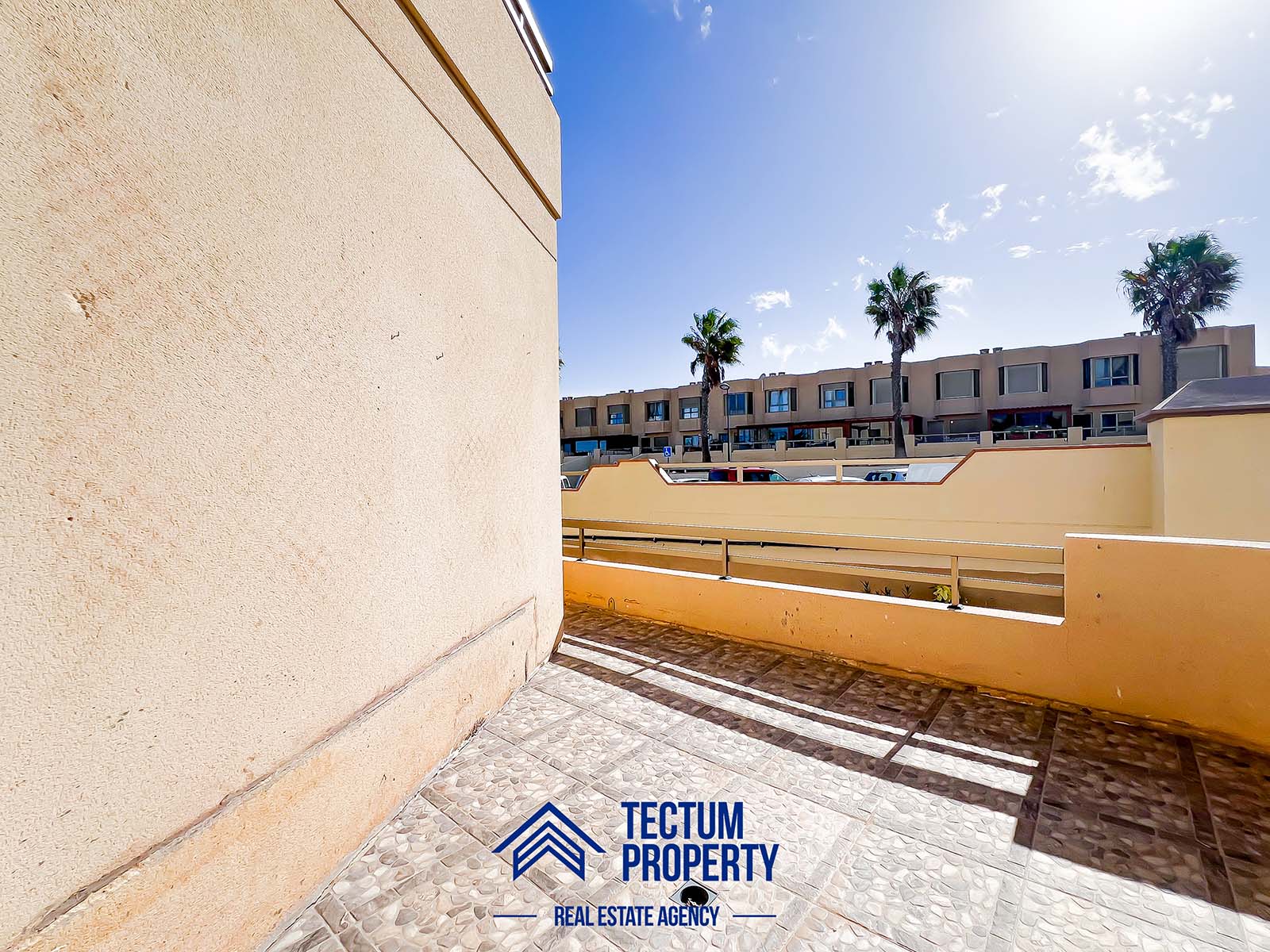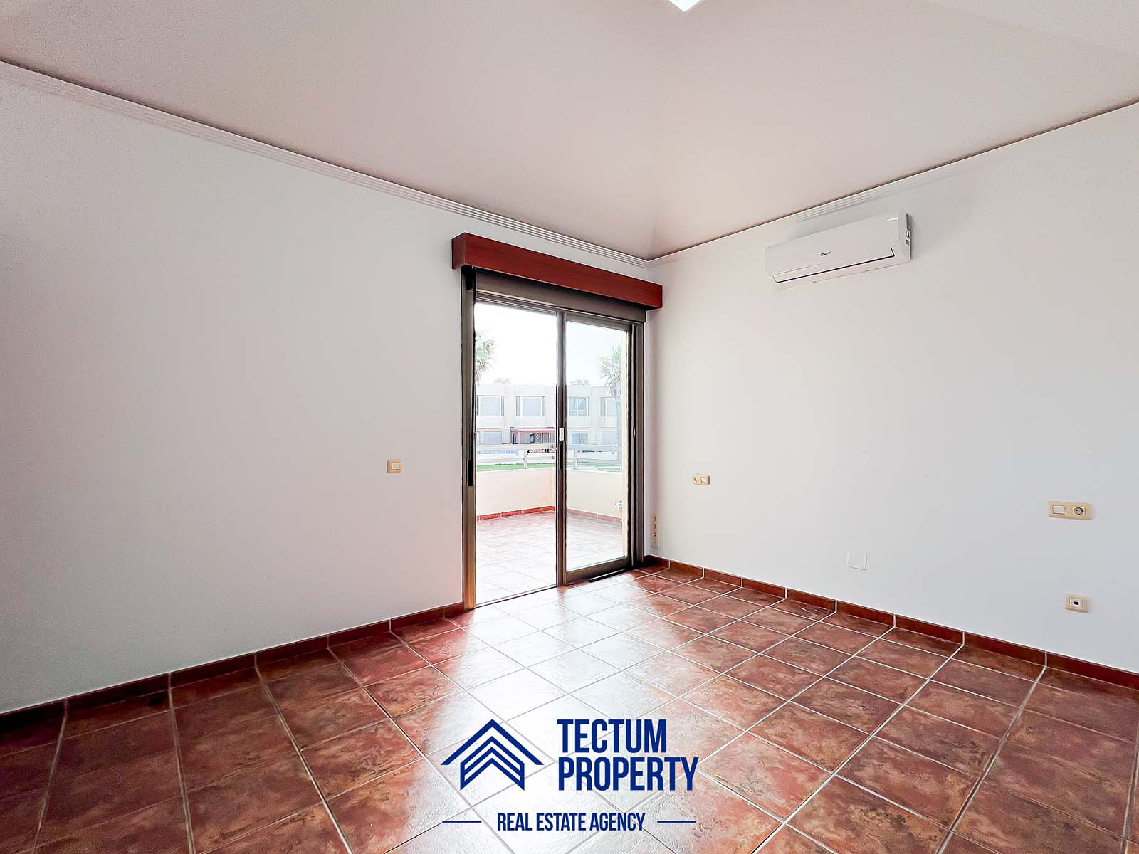 Townhouse in La Tejita, Sotavento II residential complex. The property has 223 m2 of living space and comprises 3 spacious bedrooms, 2 bathrooms, a large and bright living room, an open-plan kitchen, and several sunny terraces. It also includes a private garage and 2 storage rooms. The house has been recently painted and features air conditioning. It is located in a well-maintained complex with a communal swimming pool and landscaped gardens. Just a 5-minute walk from the beach.