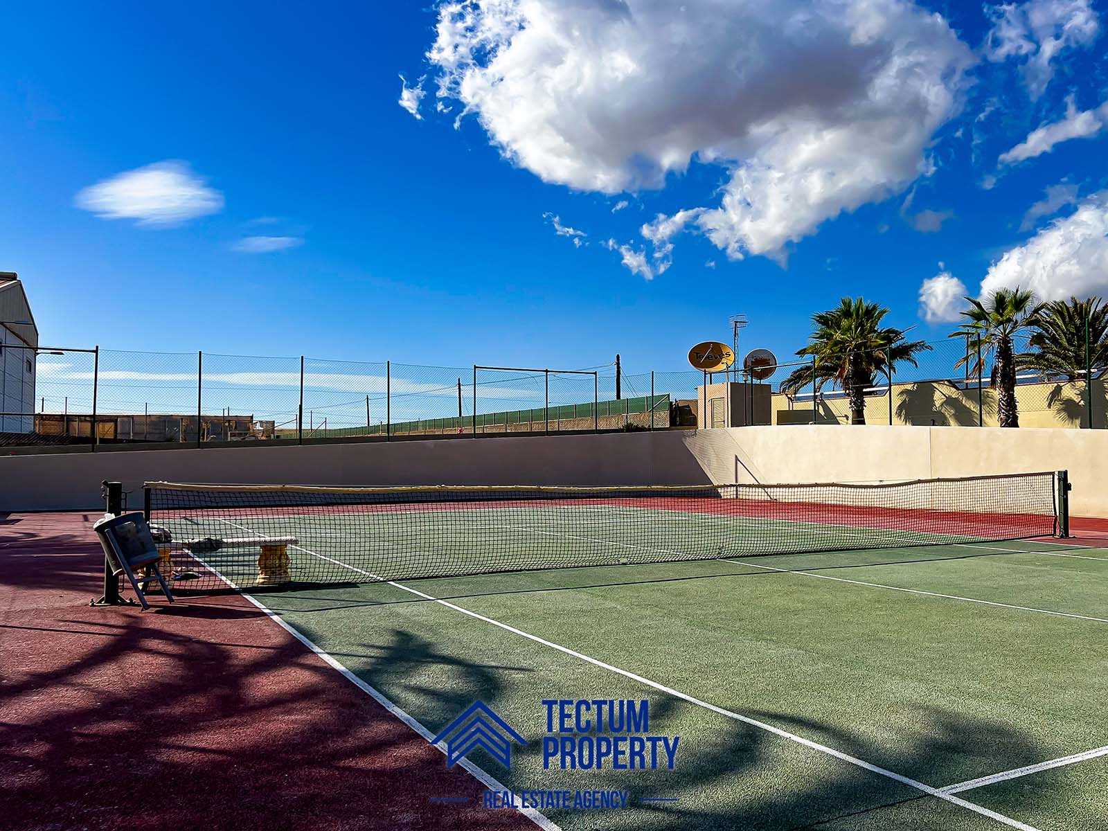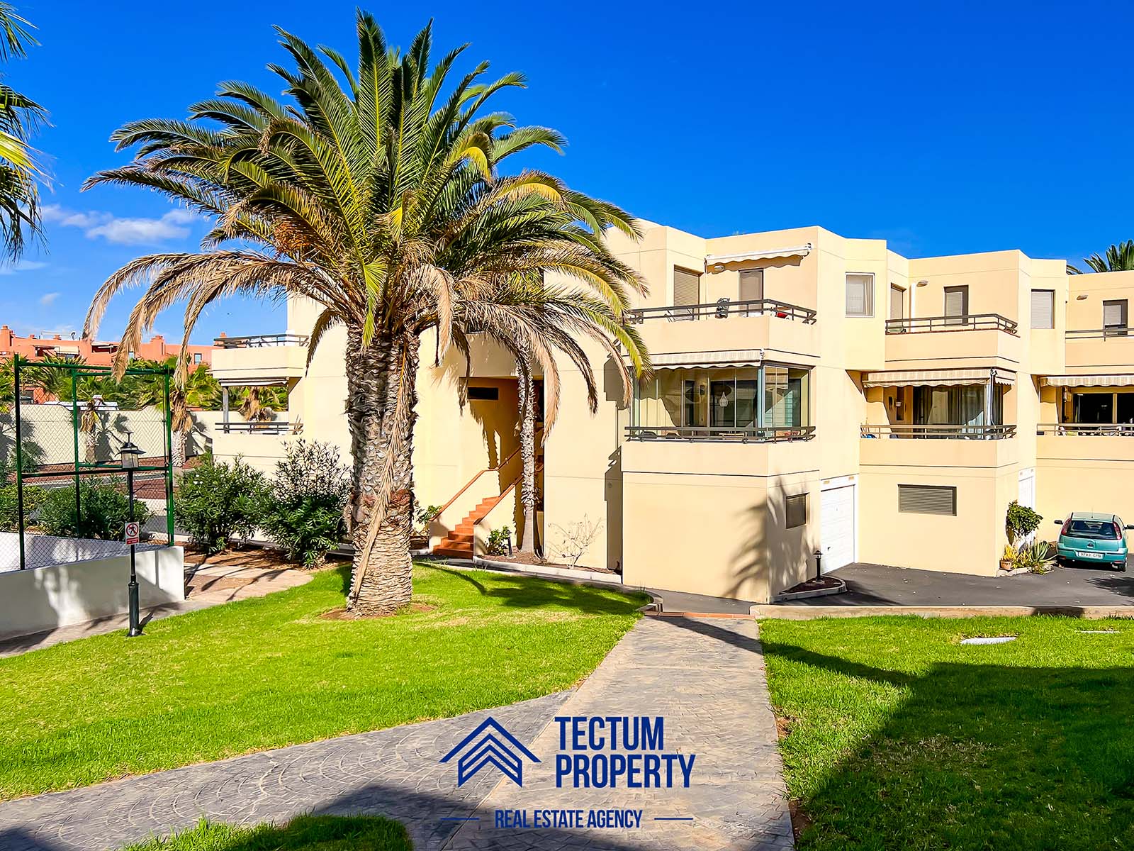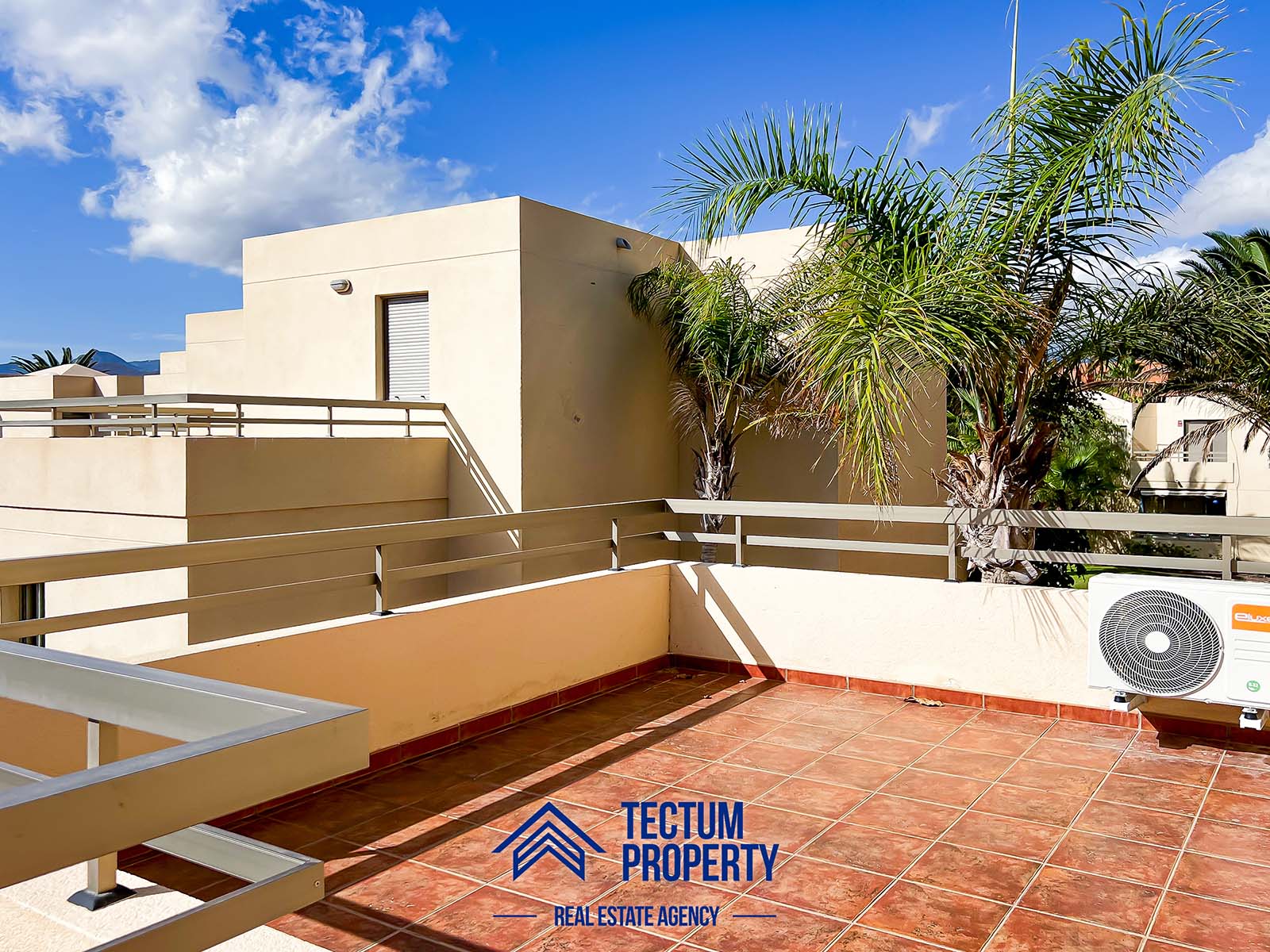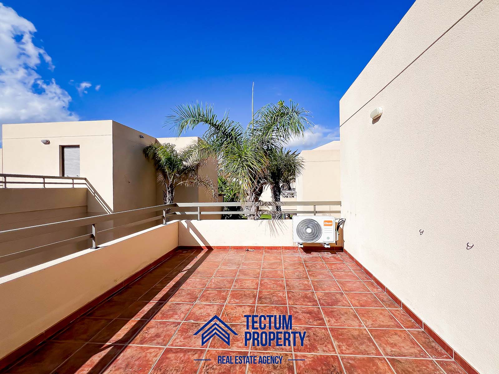 Townhouse in La Tejita, Sotavento II residential complex. The property has 223 m2 of living space and comprises 3 spacious bedrooms, 2 bathrooms, a large and bright living room, an open-plan kitchen, and several sunny terraces. It also includes a private garage and 2 storage rooms. The house has been recently painted and features air conditioning. It is located in a well-maintained complex with a communal swimming pool and landscaped gardens. Just a 5-minute walk from the beach.